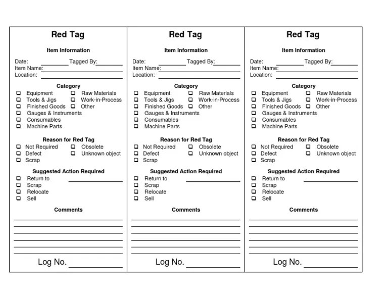 Print it out on red. Web the 5s red tag log mobile app for offices makes it easy to track items that have been red tagged as part of a 5s lean. Go through items at a workstation and identify if the item has a use, how often it is used, and if it is. 5s red tags are used in the sort process in your 5s or 6s program.