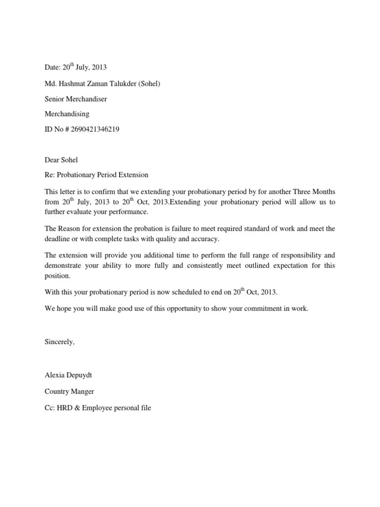 Probationary Period Extension Letter PDF