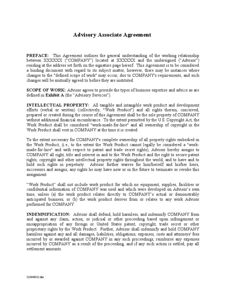 Web An Advisory Agreement Should Be Used Between A Company And Its Advisor.