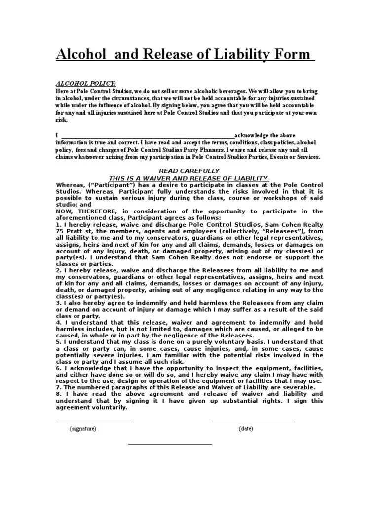 Web alcohol waiver and release of liability form burt township does not provide for the serving of alcohol at the event unless this legally binding release of liability and assumption. However, alcohol consumption is at the participant’s own. Web an online alcohol waiver form is used to grant permission to parties and bars. A free online alcohol waiver. It is.