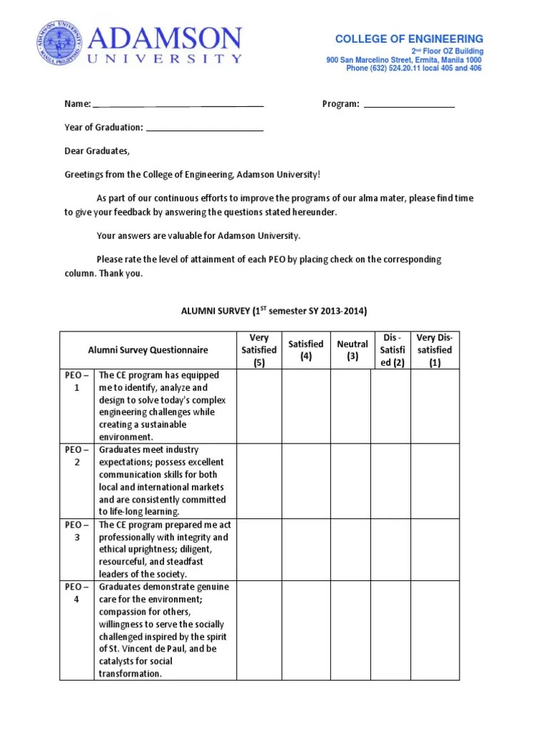 Web alumni employment survey form preview shared by michelleg in alumni forms cloned 150 this form survey asks former students about their employment history,. Rsu 2014 alumni survey report page 3 contact information dr. Based on this information, communications can be tailored to their interests. Web this survey is crucial for institutions aiming to improve their offerings, strengthen their alumni.