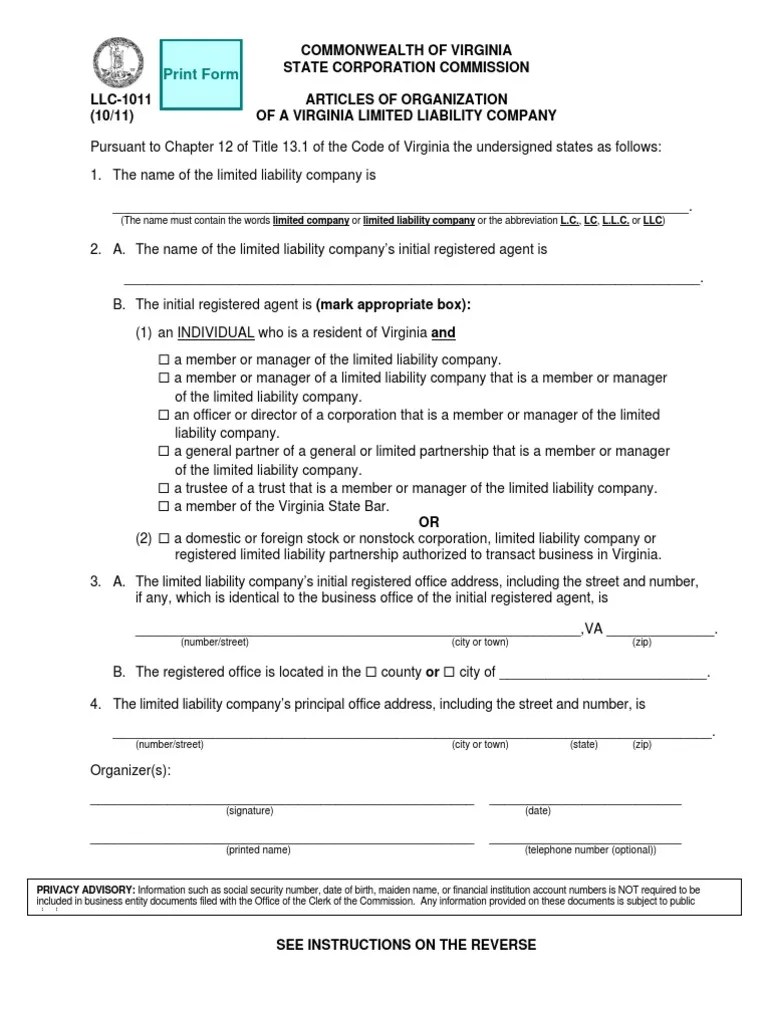 Web to create an llc in virginia, you must file articles of organization with the state corporation commission (scc). Web articles of organization (virginia) 11 7 4 about this template this template provides the necessary information for forming a. Web an articles of organization form is the document that one must complete and submit to the state to establish the..