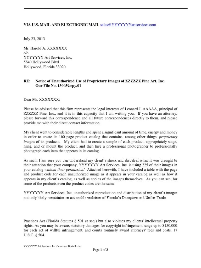 Copyright Cease and Desist Letter PDF Copyright Infringement