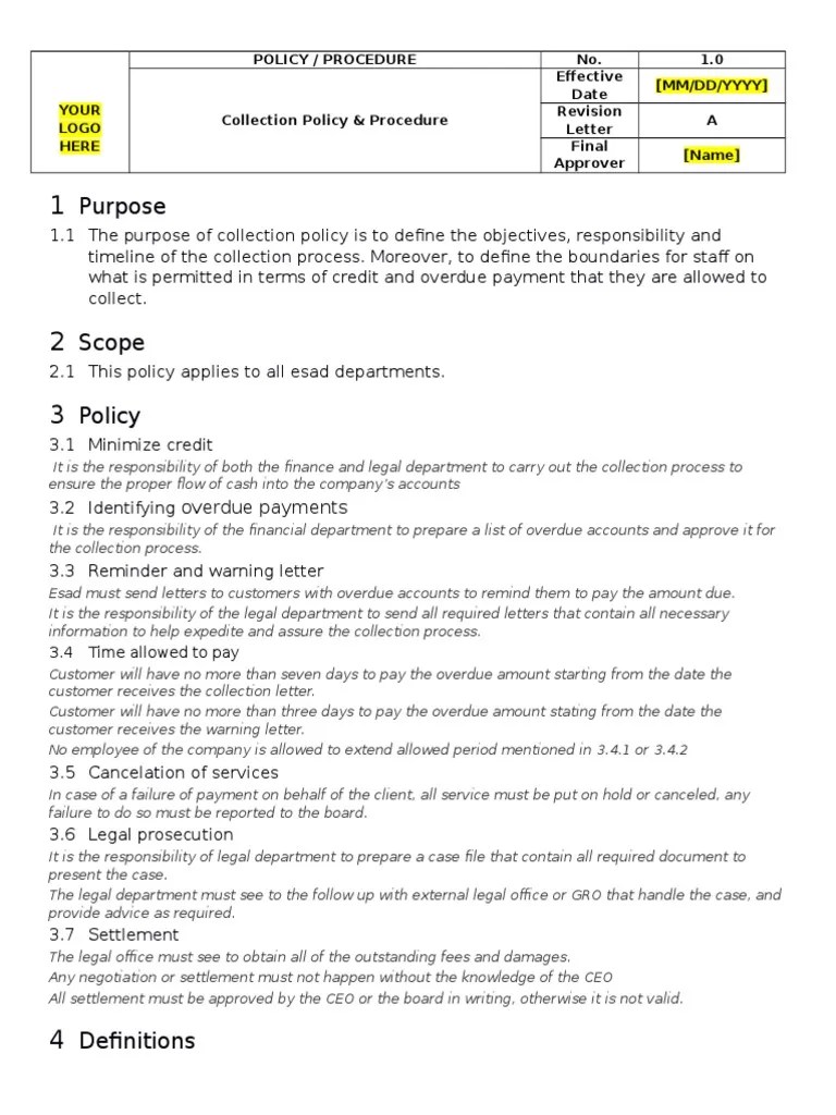 You can download our collection policy template to get started. Web a collections policy is a set of guidelines that govern the accounts receivable team’s procedures. Web your collections policy is made up of a number of sections each addressing critical portions of collections decisions, care and. Web nate budde 380 articles last updated: