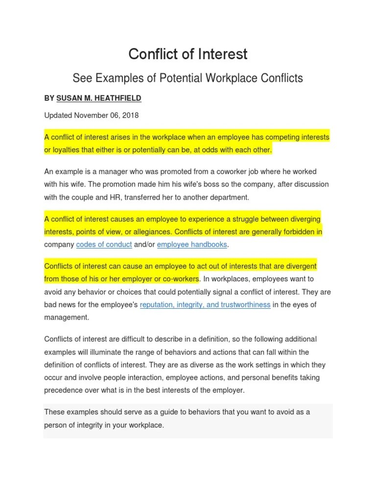 Web a conflict of interest is when you have a certain personal interest that may interfere with the interests you must have as someone connected to another person or. Web the irs form 990 even asks whether or not a nonprofit has a written policy on conflicts of interest, how a nonprofit manages conflicts, and how a. Web conflict of.