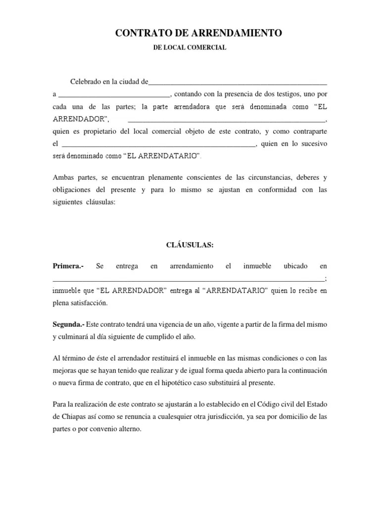 Contrato de Arrendamiento de Local Comercial Alquiler Business