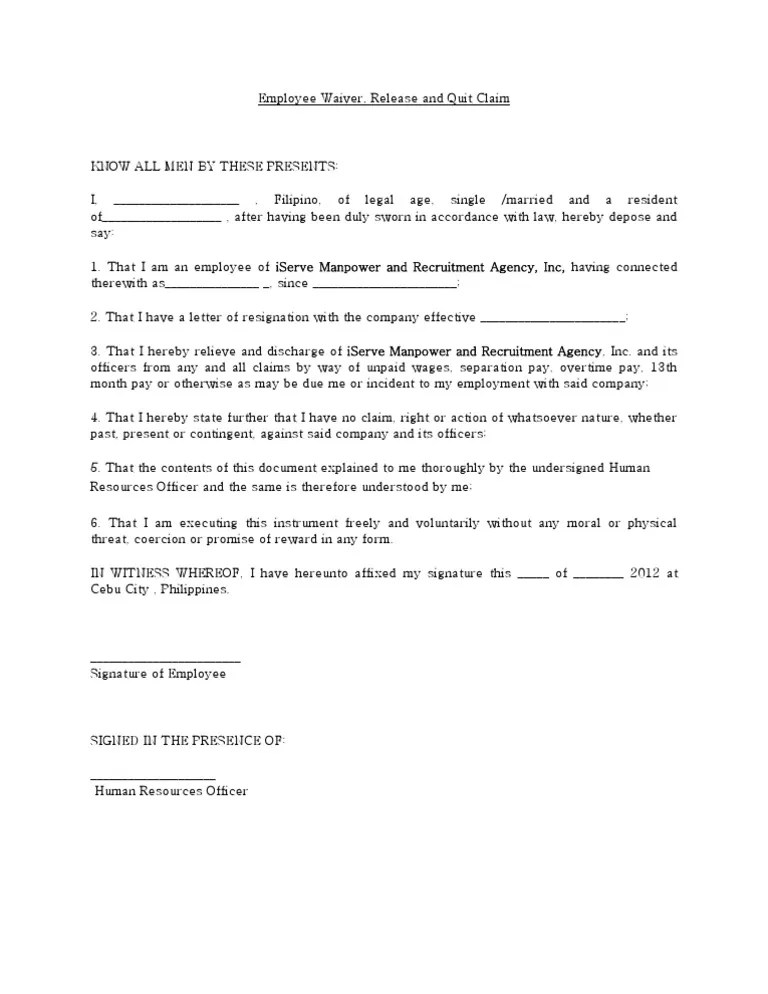 Sample Waiver Form For Employees