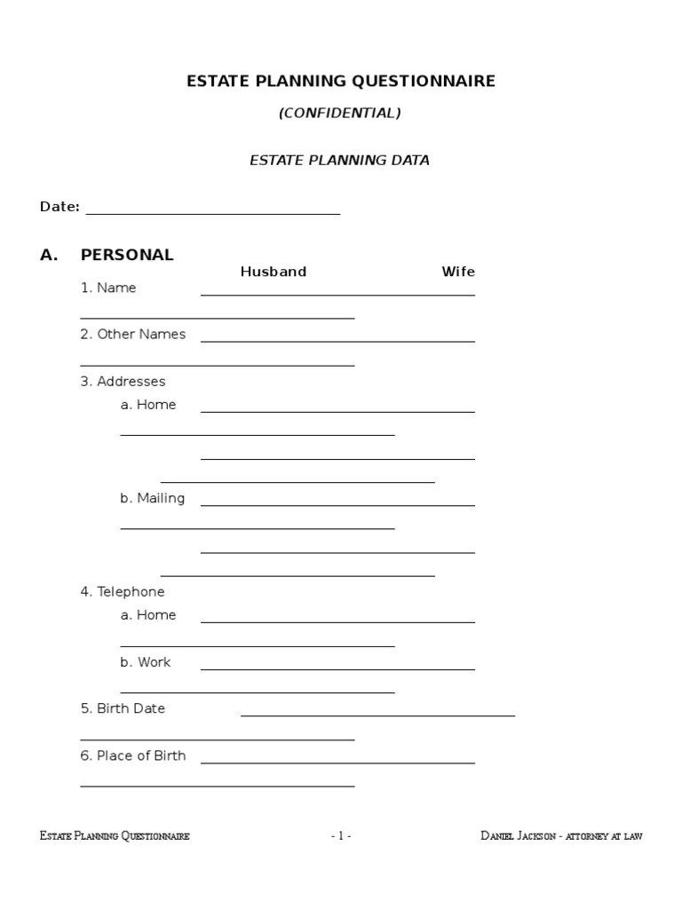 Estate Planning Questionnaire Form Fill Out and Sign Printable PDF