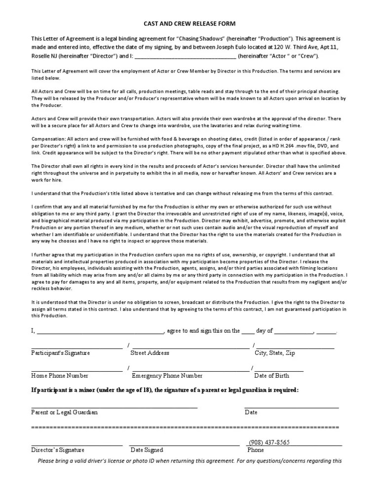 Cast and Crew Release Agreement PDF Intellectual Works Virtue