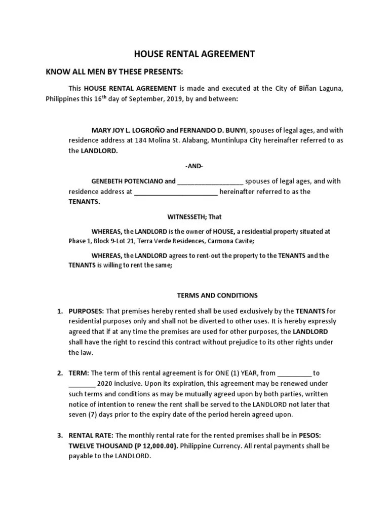 HOUSE RENTAL AGREEMENT.pdf Landlord Leasehold Estate