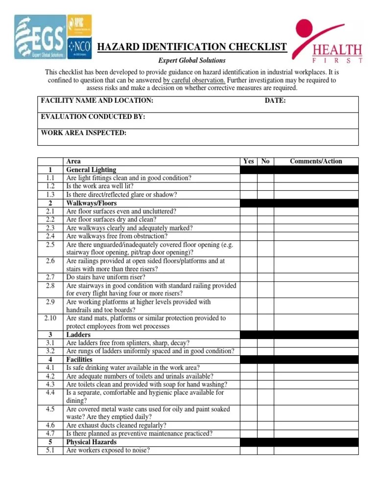 Hazard Identification And Risk Assessment Template