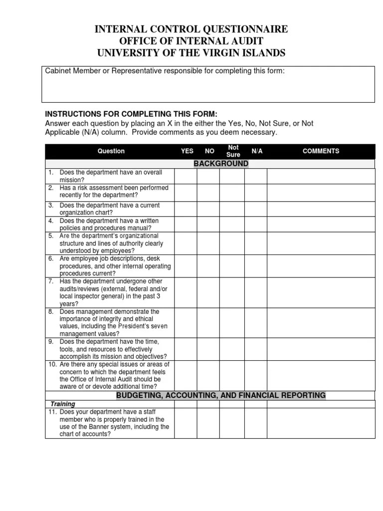 Internal Control Questionnaire 2 Internal Audit Employment