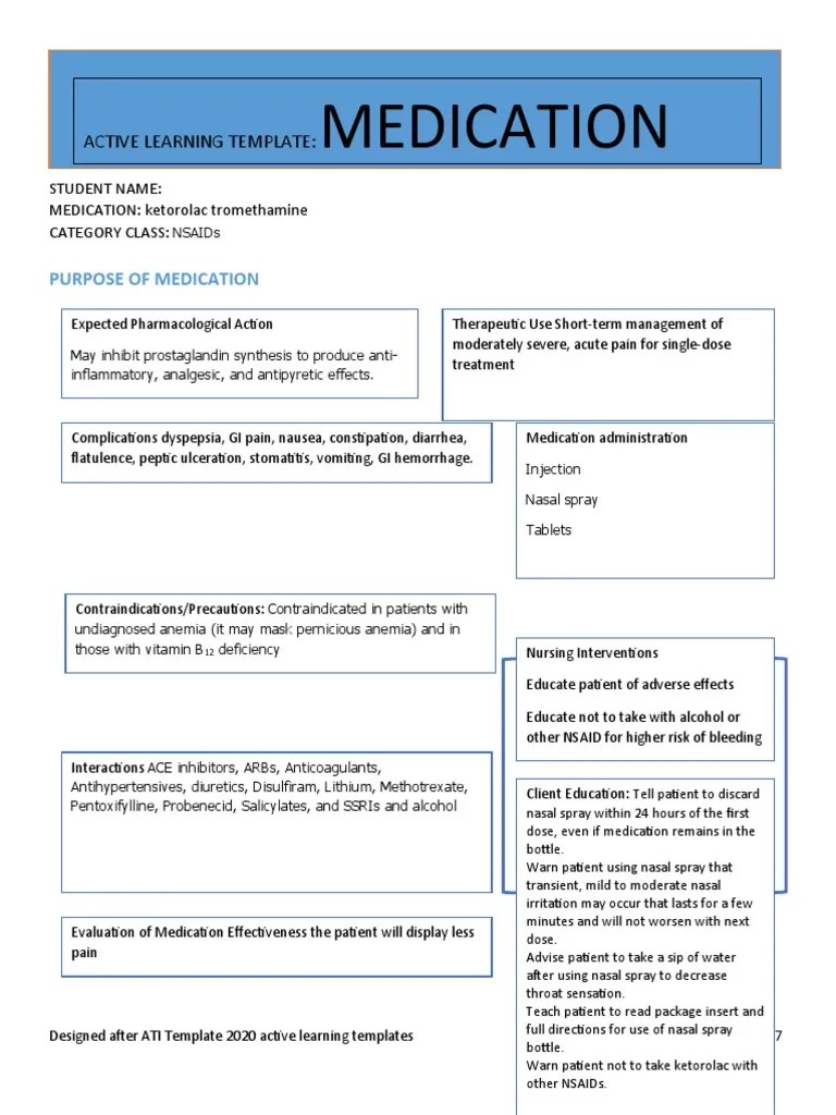 Ati Medication Template Ketorolac PDF Nonsteroidal Anti