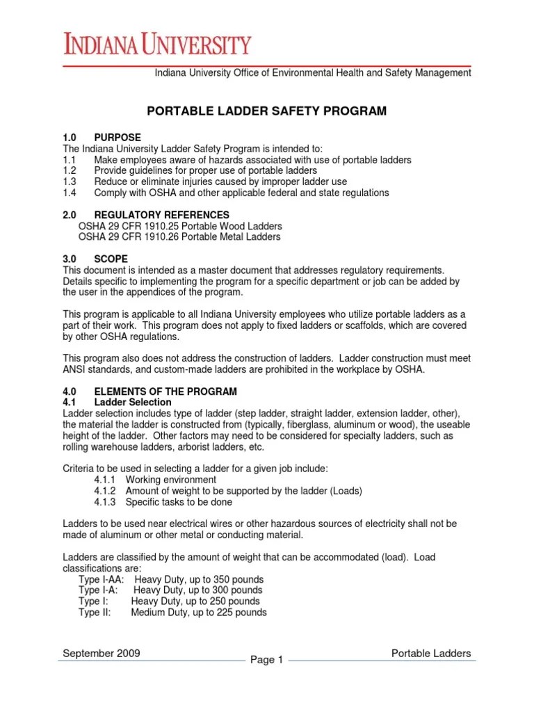 Portable Ladder Safety Program 09 Ladder Occupational Safety And