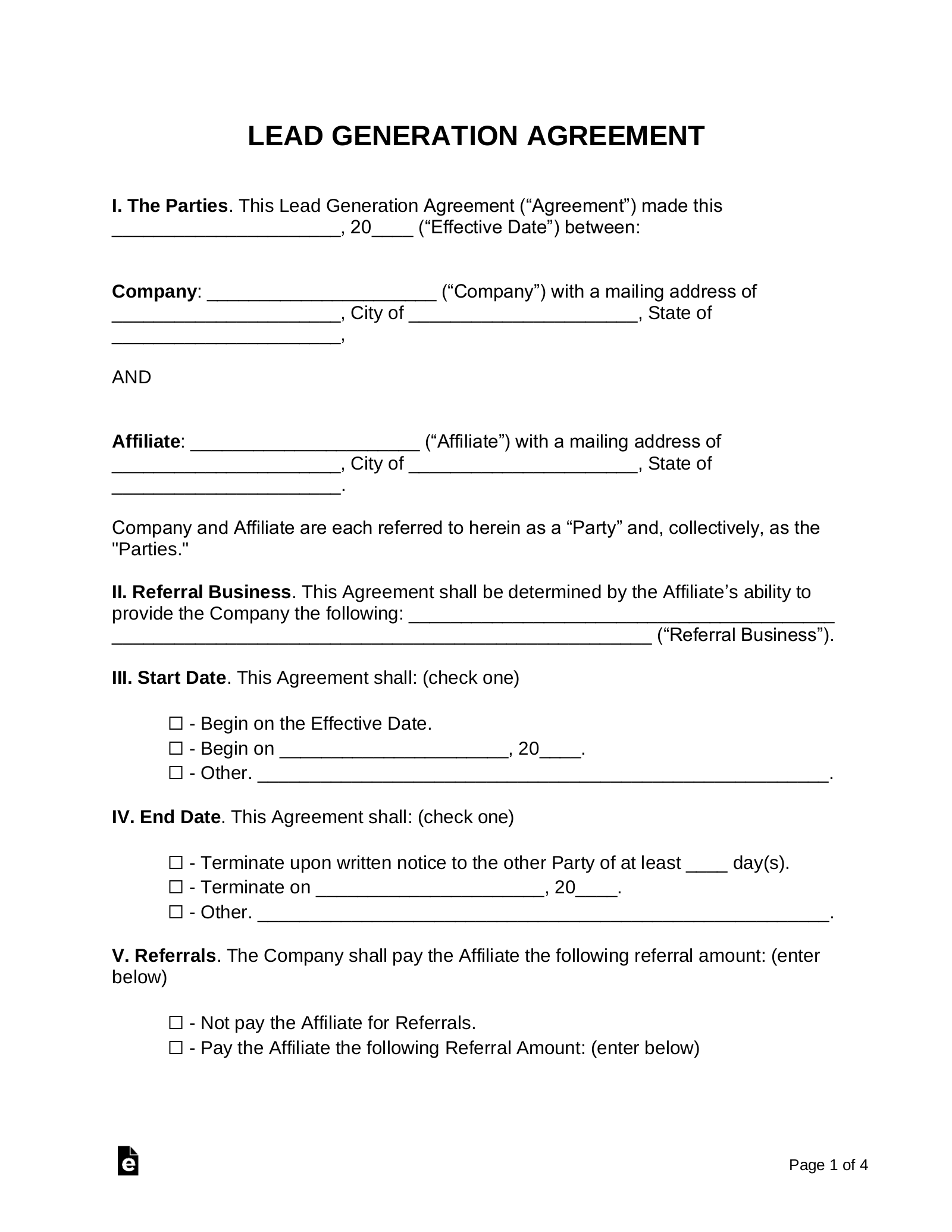 Free Lead Generation Agreement PDF Word eForms