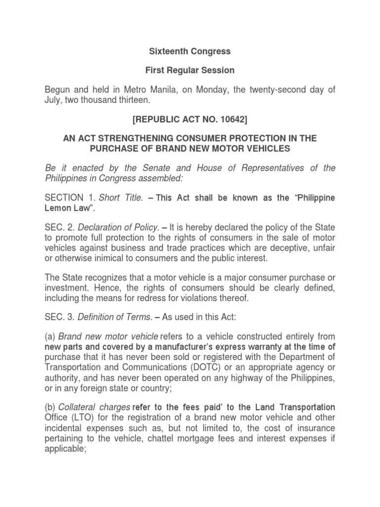 The florida lemon law or the florida motor vehicle warranty enforceme…
