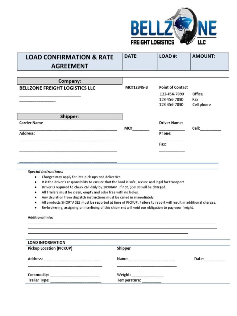 Load Confirmation & Rate Agreement PDF Cargo Trade