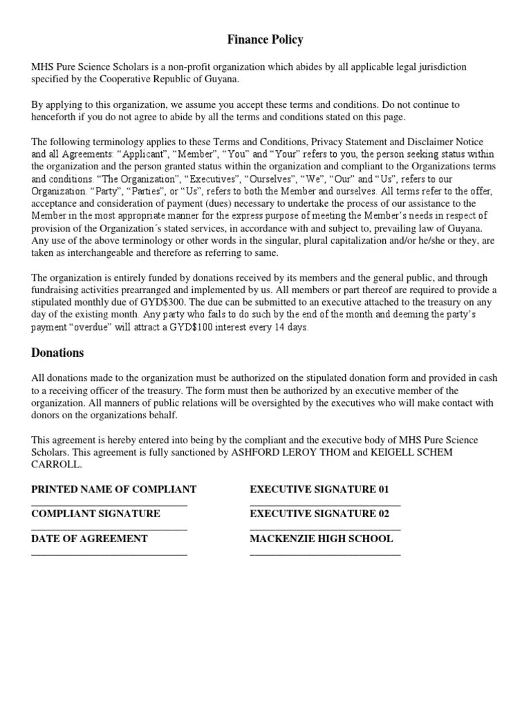 Finance Policy Template PDF Nonprofit Organization Common Law