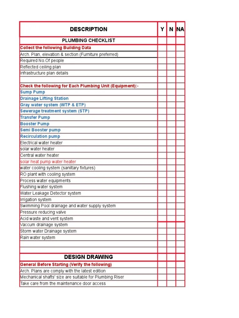 Plumbing Design CheckList PDF Duct (Flow) Hvac