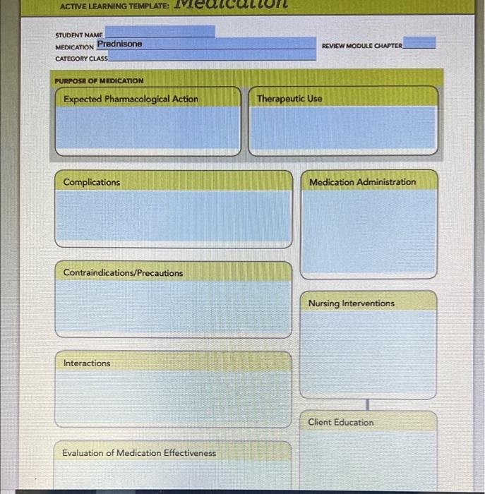 Solved ACTIVE LEARNING TEMPLATE V STUDENT NAME Prednisone