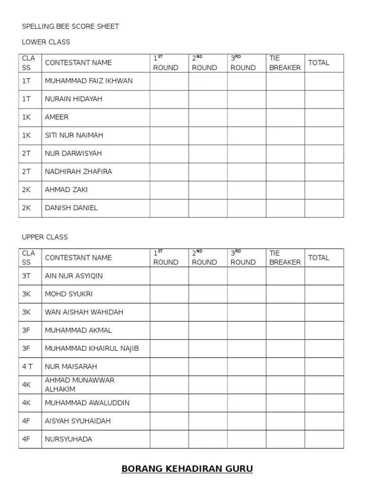 Web you'll find 5 designs here in all, featuring either a whimsical bee or a more classic design. 123 certificates offers printable certificates for spelling bee contests. Web spelling bee score sheet pdf. Web 29+ best score sheet templates.