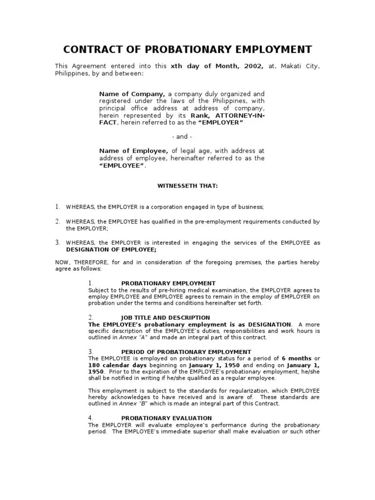 Probationary Contract Employment Drafted PROBATIONARY EMPLOYMENT