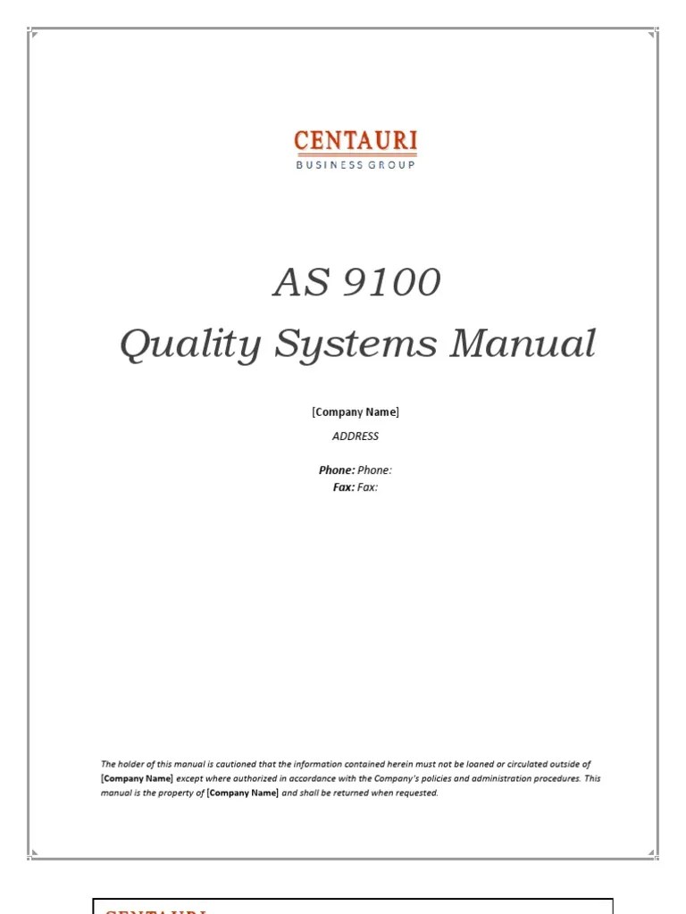 AS 9100 Quality Systems Manual Template (Sample) Quality Management