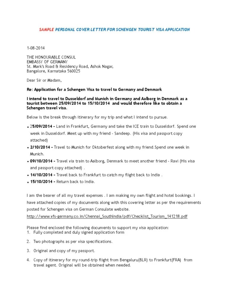 Personal Cover Letter Schengen Visa Travel Visa Immigration Law