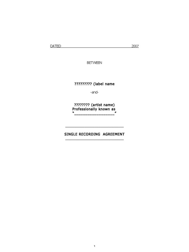 Example Single Song Recording Agreement Royalty Payment Copyright
