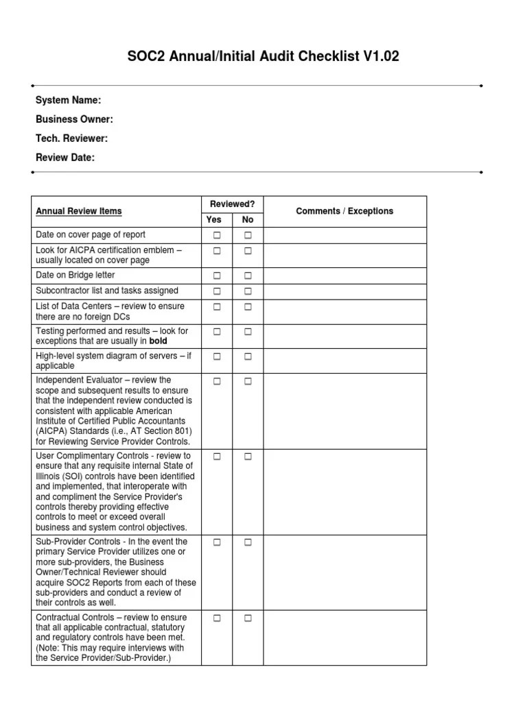 Web soc 2 compliance kit: Free policy templates, compliance checklists, and evidence spreadsheets to save you hours of manual work. Logicmanager offers soc 2 compliance software that provides a powerful risk management tool. Web the ultimate soc 2 compliance checklist template: The specific answers to why.