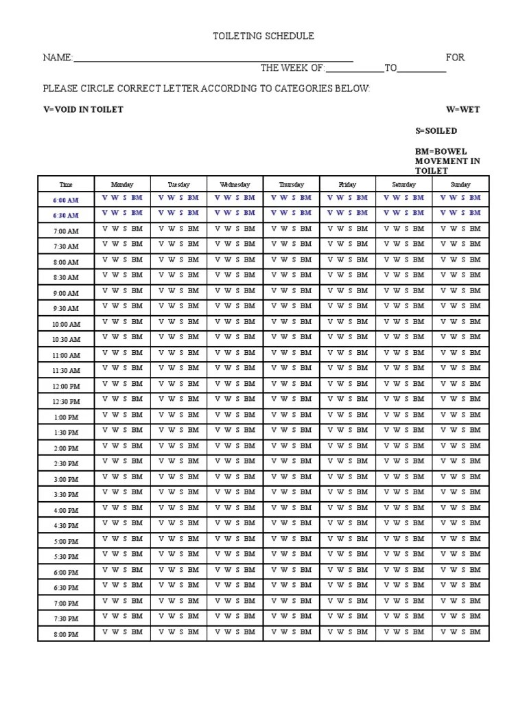 Printable bathroom chart from kori at home 2. Creating a toileting schedule template is a straightforward. Web bladder log form name date of birth date day time legend: Web toilet cleaning schedule template.